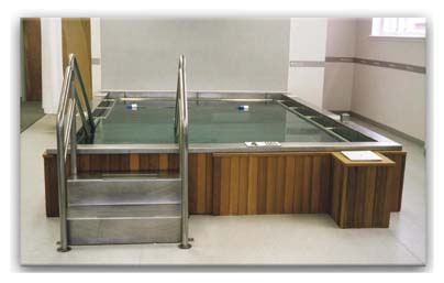 | STAINLESS STEEL HYDROTHERAPY VESSELS Bradford's involvement in physical therapy and rehabilitation as well as the world of sports medicine dates back to some of our first systems. Since the early 1980s, Bradford's spas and therapy systems have been used by healthcare professionals across the miles. The same care, dedication, and quality of production is used in all Bradford products. This single-minded focus of customer satisfaction is what makes so many of Bradford's customers repeat customers.At Bradford we design and fabricate all systems in-house. By using only Type 316L Stainless Steel and commercial grade slip-resistant mosaic tile, we give our customers the finest therapy vessels built. Bradford's HydroTherapy vessels are suited for in-grade or above-grade installations (the same as all of our spas and SwimSpas®) or even fully portable. Bradford HydroTherapy units are available in almost any configuration of depths as well as with or without observation windows and come with in-built water treatment and sanitation.Bradford's contributions to the rehabilitation and healthcare communities include: hot and cold water bruise tanks, soaking tubs therapy jet fitted tubs and therapy vessels with variable flow current for resistance training. Bradford's primary concern and goal in the healthcare field is in making sure that the healthcare professionals have the right tools to do their job. There is no need greater than helping you provide someone with a better quality of life.Bradford's HydroTherapy vessels are manufactured to the customers' exacting needs and specifications. At Bradford, we understand and appreciate the need of the physical therapy industry's requirement for flexibility of design and application. No Bradford customer has ever been forced to settle for an "off-the-shelf" unit, and they never will! We don't try to sell you what we have ... "we build what you need." Every day Bradford HydroTherapy Systems are helping people everywhere become stronger, healthier, and happier ….. Designed by you, built by us ... |